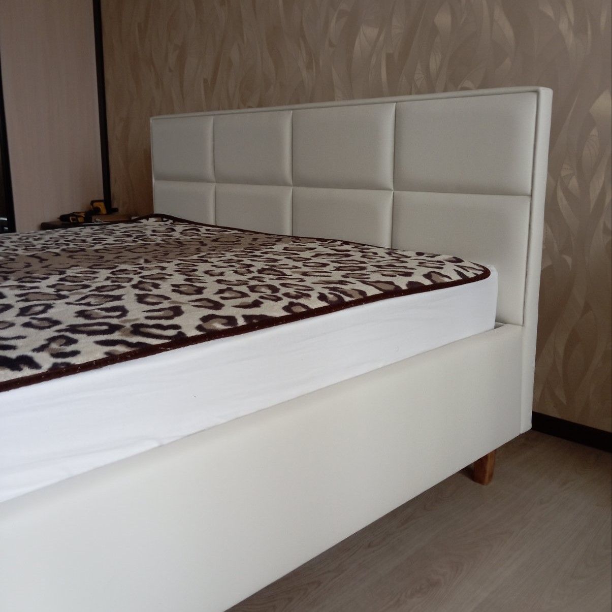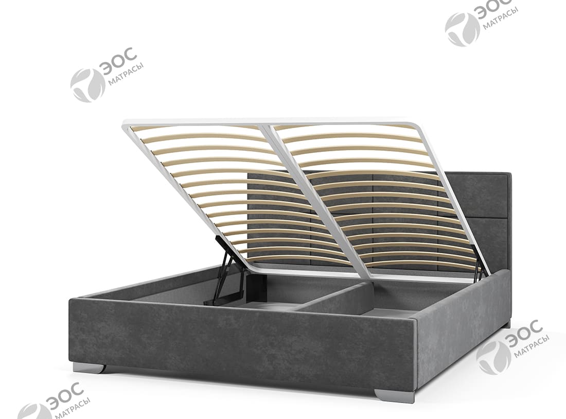Вариант обивки и цвет, выбрала на сайте, все обговорила с менеджером. Обивка очень приятная тактильно, смотрится дорого, комфортна в обиходе. Спальное место просторное. Лаконичный дизайн вписывается в современную спальню. Пользуюсь коробом, удобно.