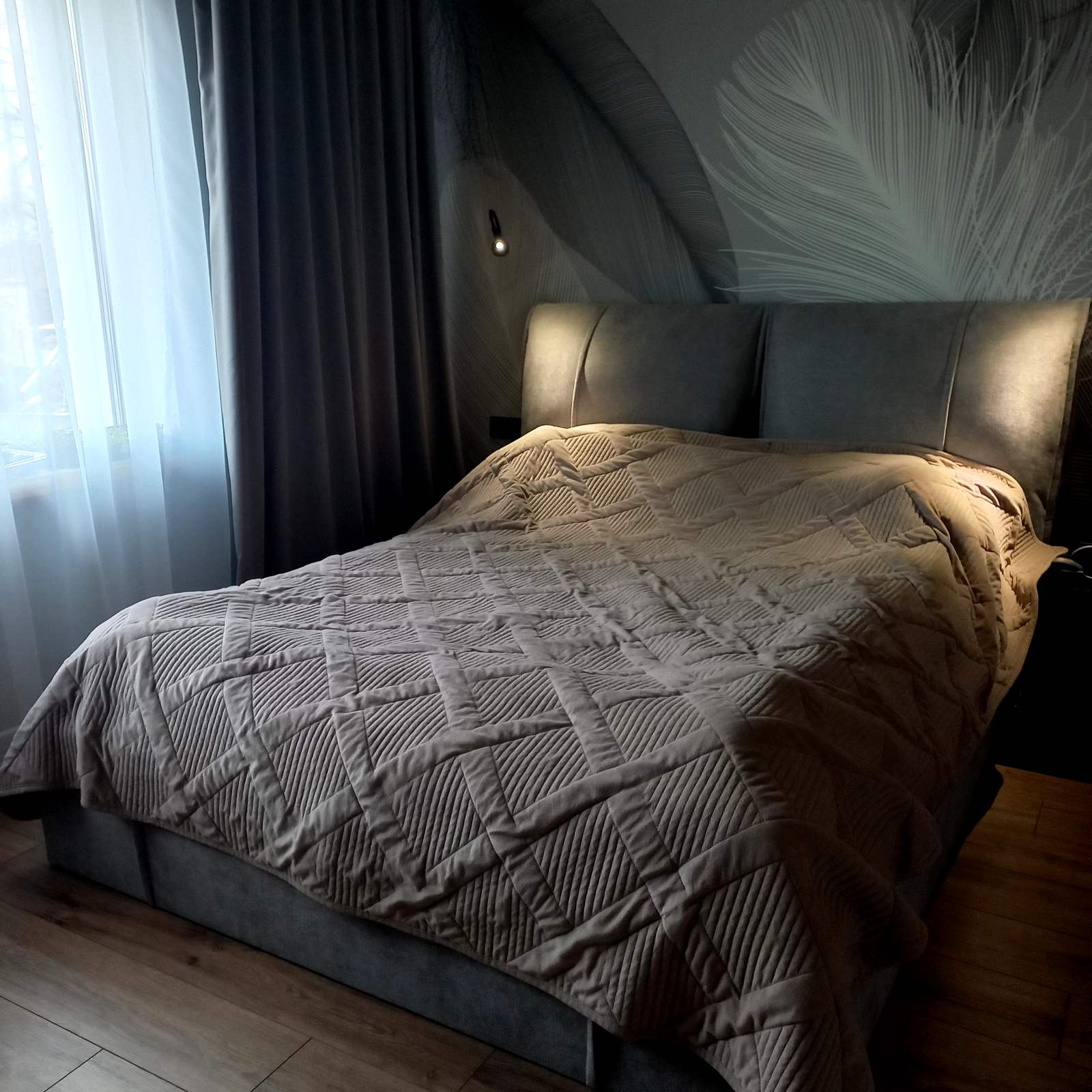 Кровать сразу привлекла наше внимание при посещении салона. Мысль о том, что она необычная, но очень классная не отпускала меня. Обошли кучу мебельных салонов в поиске оптимального варианта и каждый раз возвращались в ЭОС, т.к. кровать очень эффектная. Изголовье исполнено большими мягкими подушками, наполненными силиконовыми волокнами. Я любитель почитать перед сном и это очень удобное для меня решение. Все продумано в этой модели для удобства, на царгах ткань съемная, можно снимать и стирать по мере надобности. Есть подъемный механизм для хранения спальных принадлежностей. Решение было принято в пользу данной модели. Заказ оформлен, пришлось подождать изготовления нашей кровати под наши запросы (цвет, качество тканей, опоры) на стоимость не влияют, что удивительно, во всех салонах что мы посещали стоимость увеличивалась существенно когда выбираешь ткань и цвет под свои запросы. Время пролетело быстро, кровать доставили и собрали, матрас заказывала тут же, доставили все вместе и я не перестаю любоваться своей покупкой каждый день. Очень удобная и красивая кровать, освежила интерьер спальни. Покупкой очень довольны. Спасибо ЭОС.