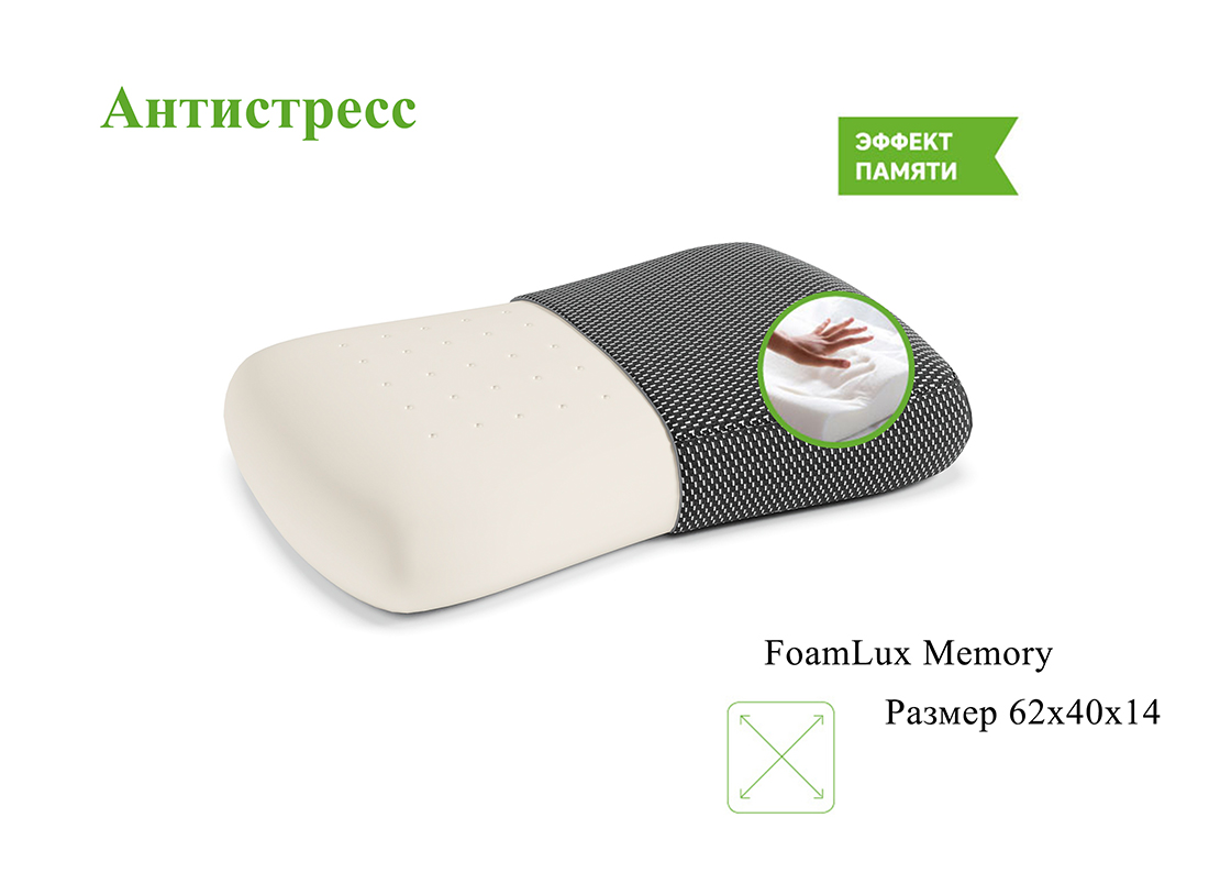 · FoamLux Memory. Современная гипоаллергенная пена с эффектом памяти. Отличается высокими ортопедическими свойствами: принимает анатомическую форму тела, обеспечивает правильную поддержку позвоночника и создаёт высокий уровень комфорта. Равномерно распределяет нагрузку по всей поверхности и снимает напряжение на отдельных участках Сертификат соответствия качества CertiPUR свидетельствует о безопасности продукции и подтверждает, что в составе пены нет вредных химических веществ.
