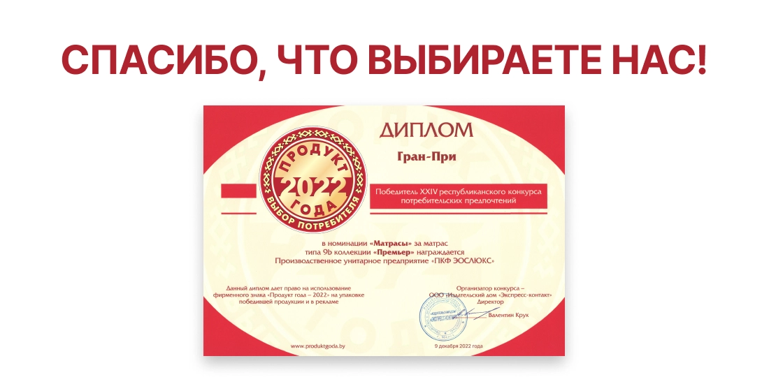 По итогам голосования потребителей компания ЭОС стала призёром Премии “Номер 1” в номинации “Матрасы белорусского производс...